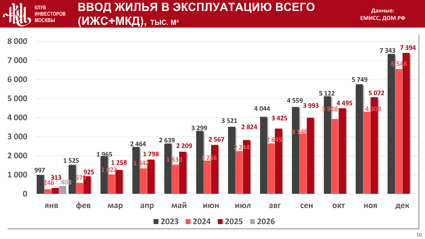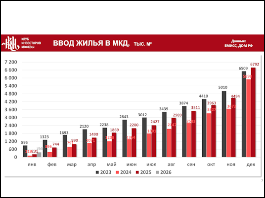 Суммарный ввод жилья за 2026 год составил 408 тыс. кв. м., что на 30,4% и на 65,9% больше, чем за тот же период в 2025 и 2024 годах соответственно: