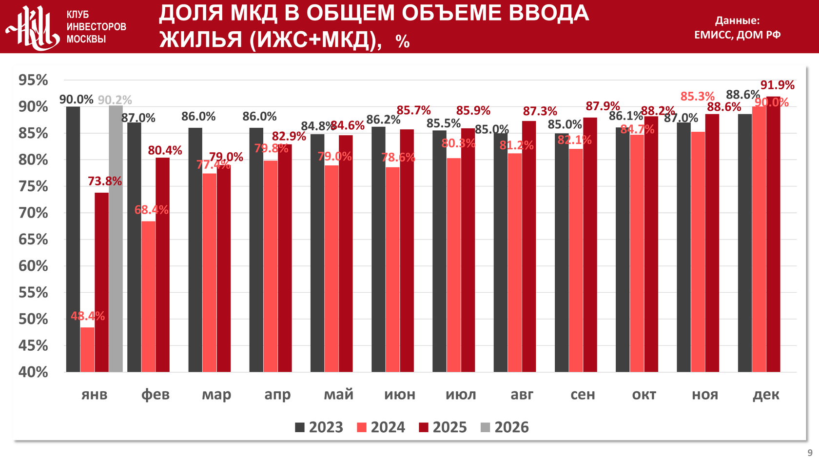 Доля МКД от общего ввода жилья составила 90,2%: