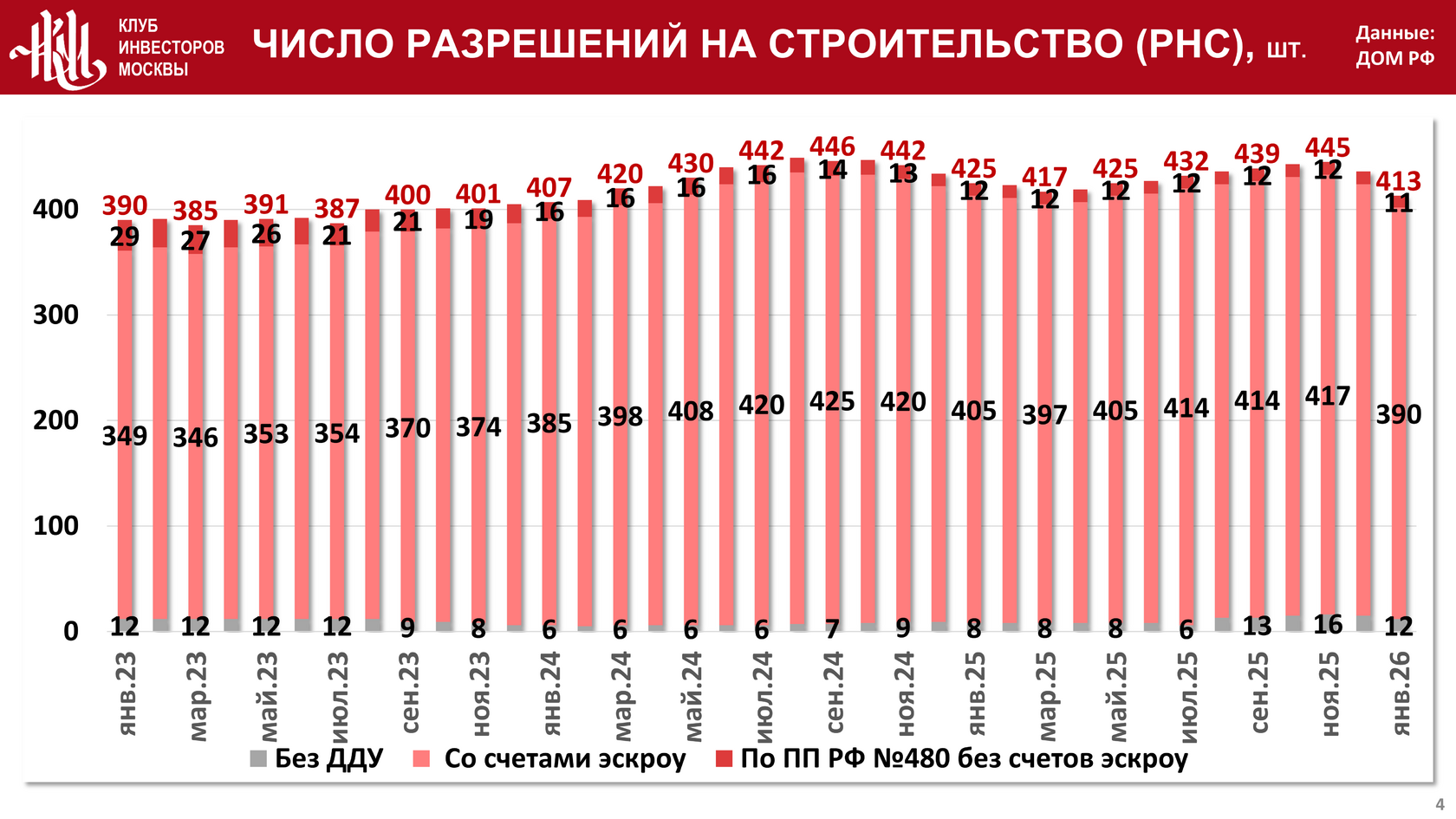 Аналитический Центр Клуба инвесторов Москвы опубликовал обзор рынка недвижимости Москвы по результатам января 2026 года. Приводим основные результаты из него