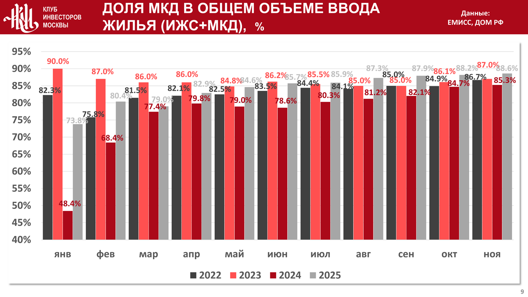 Доля МКД от общего ввода жилья составила 88,6%: