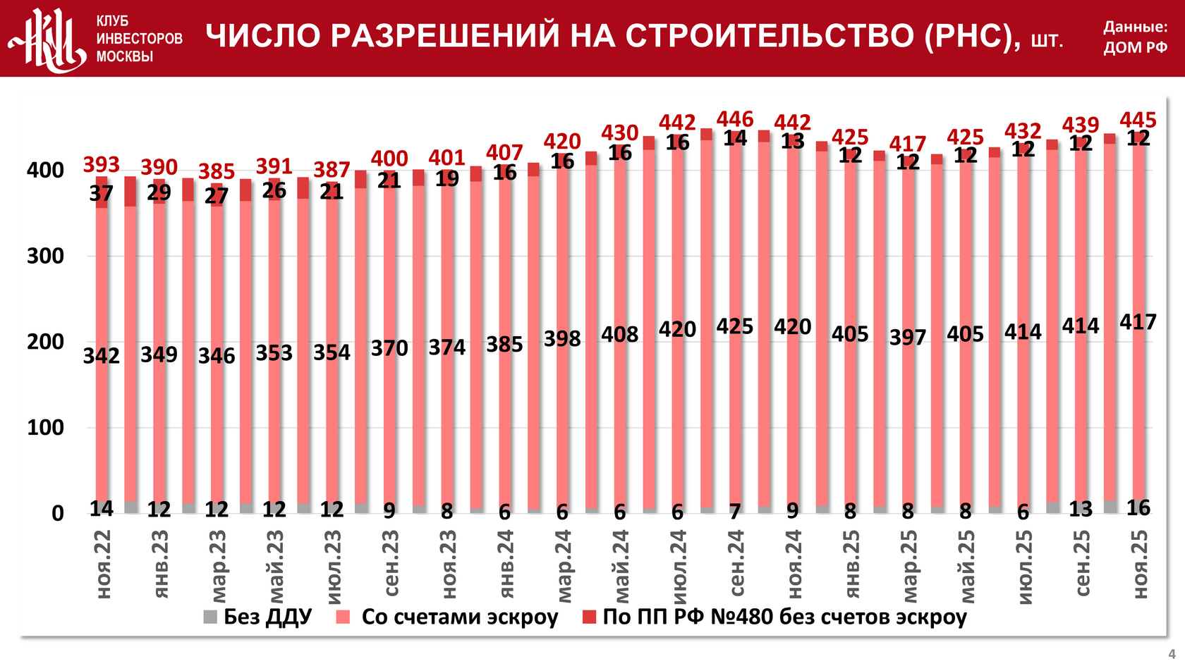 Аналитический Центр Клуба инвесторов Москвы опубликовал обзор рынка недвижимости Москвы по результатам ноября 2025 года. Приводим основные результаты из него