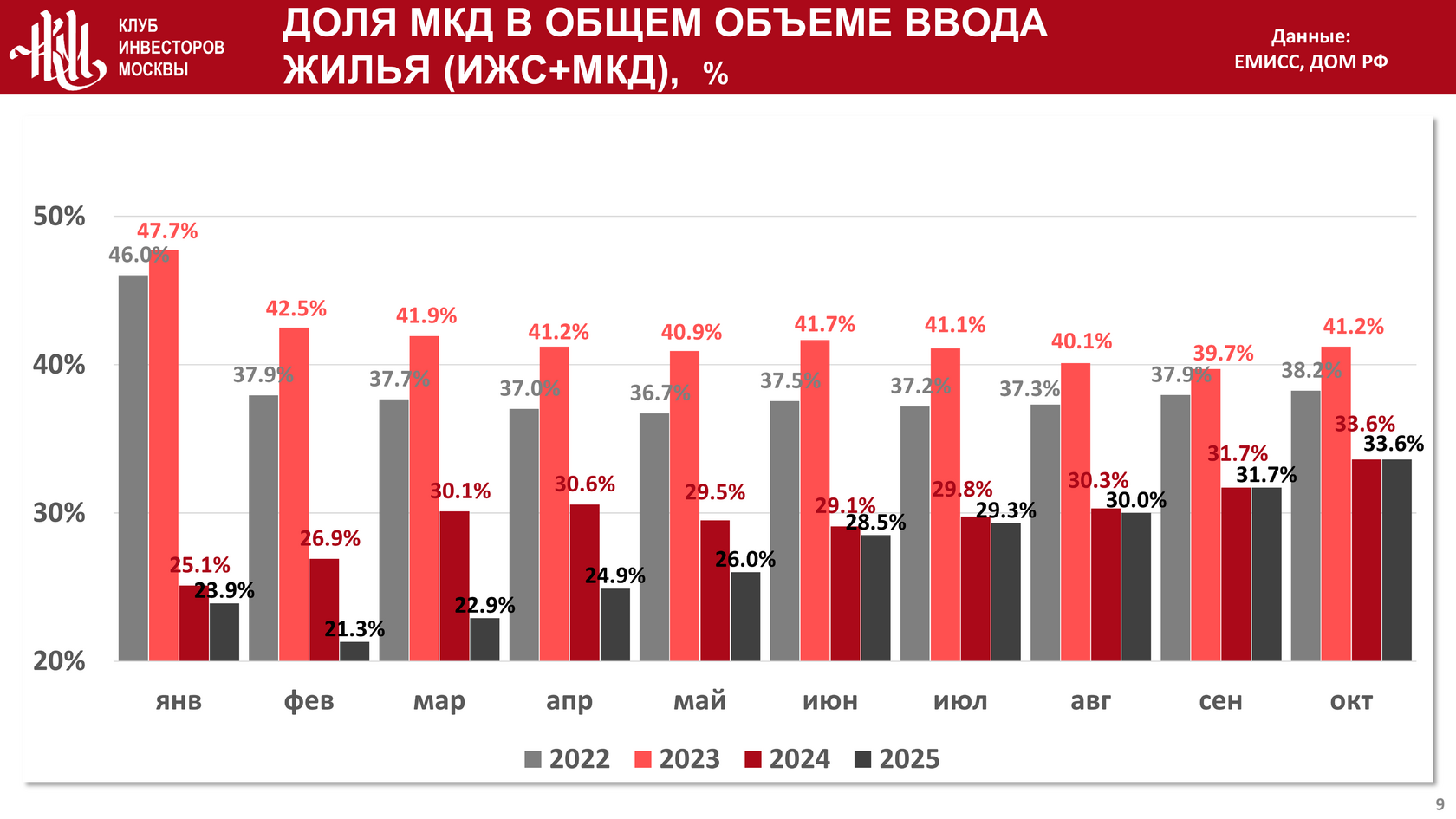 Доля МКД от общего ввода жилья составила 33,6%: