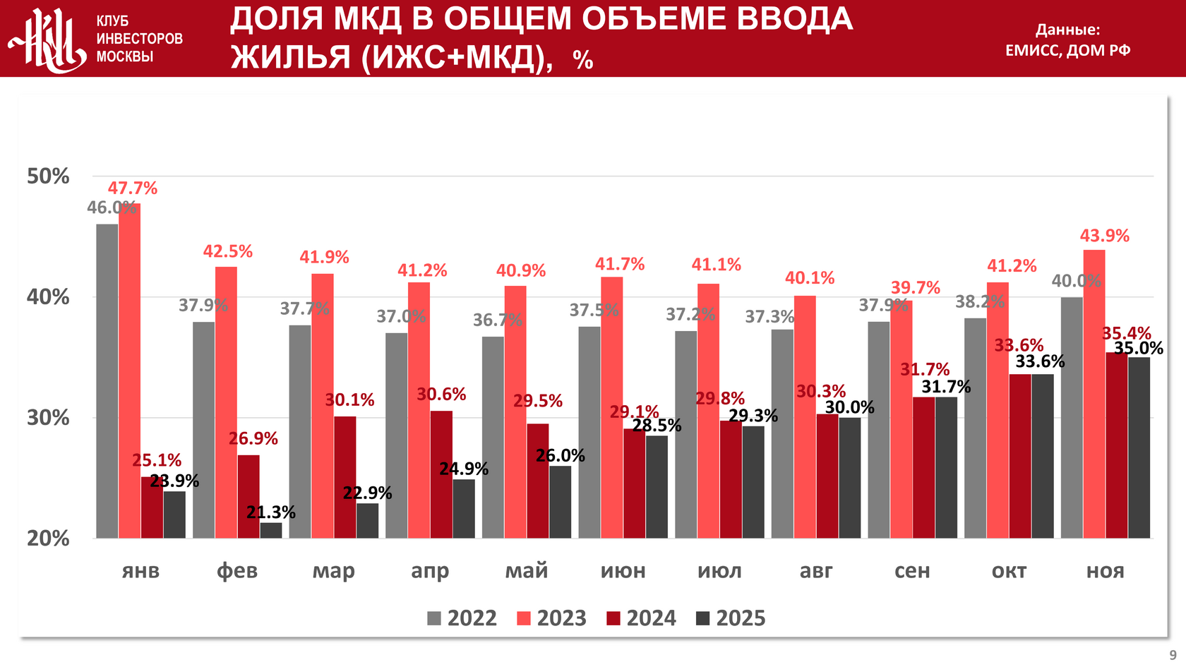 Доля МКД от общего ввода жилья составила 35%: