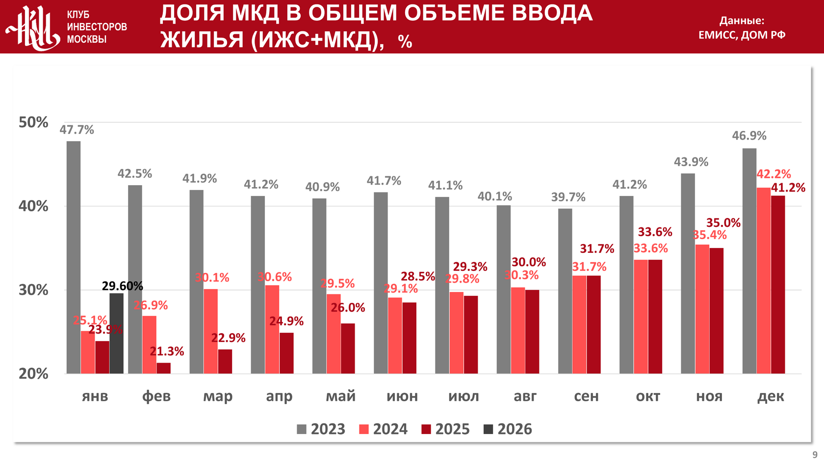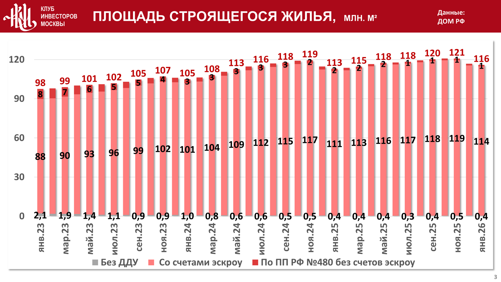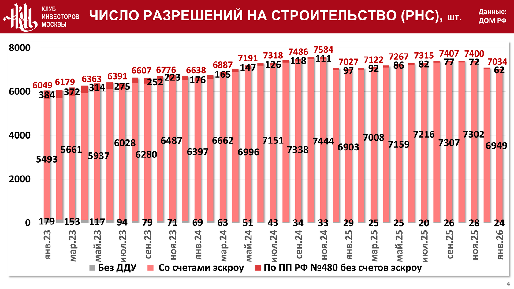Поступили новые статистические данные за 2026 год, и Аналитический Центр Клуба инвесторов Москвы опубликовал обзор рынка недвижимости Москвы по состоянию на начало февраля 2026 года. Публикуем основные результаты доклада